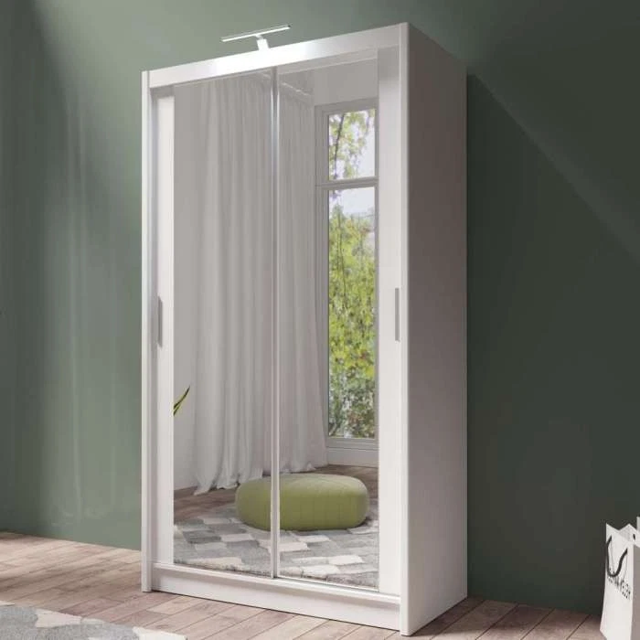 The Berlin 120cm sliding wardrobe, available in black and white, features 2 full-length mirrored doors, adding elegance and making your space feel larger.