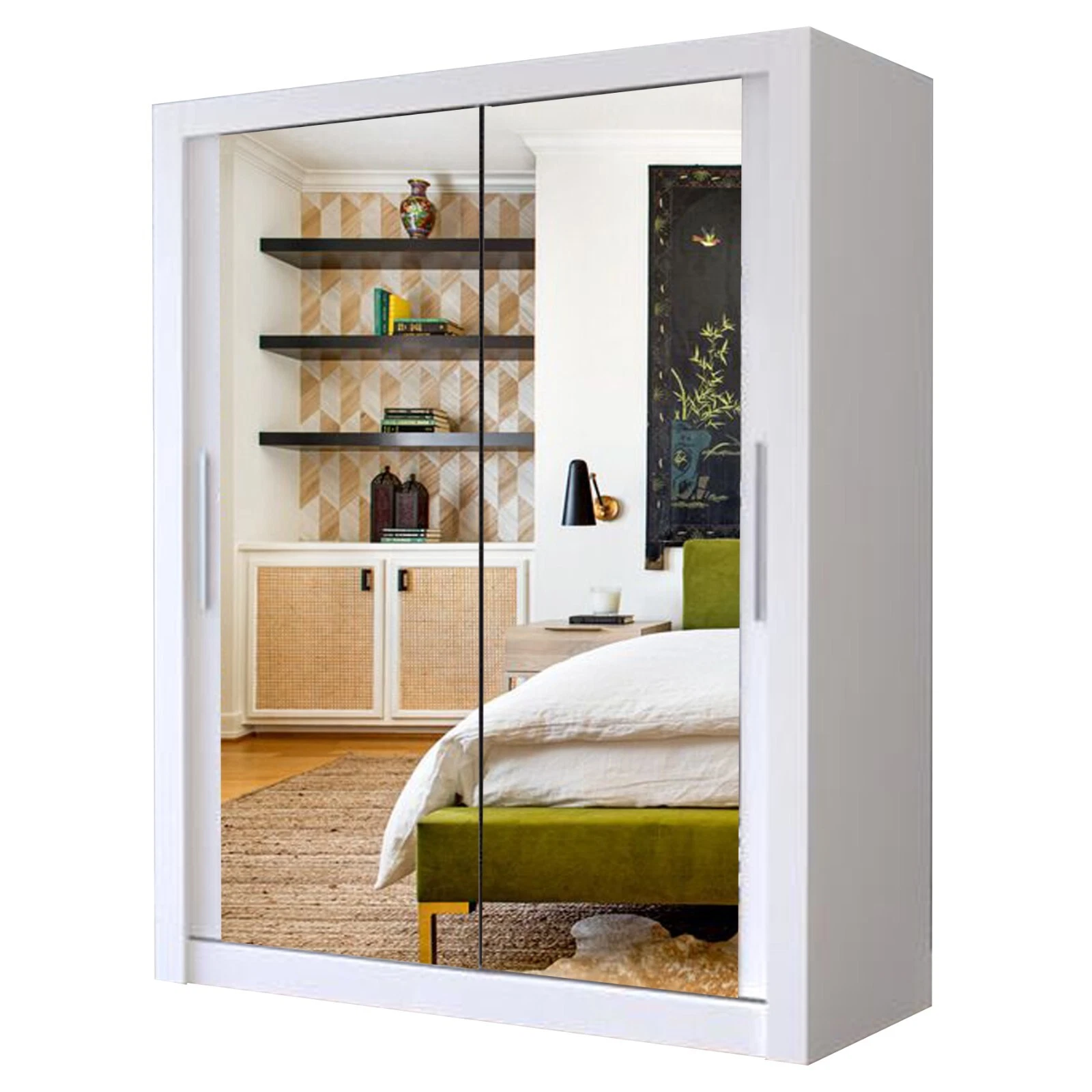 The Berlin 180cm sliding wardrobe, available in black and white, features 2 full-length mirrored sliding doors, adding a luxurious touch while enhancing the feeling of space in your bedroom.